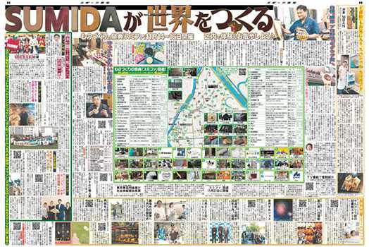 報知新聞社は「創刊150周年」を迎えた2022年6月に東京本社を墨田区横網に移転、地域コミュニティー季刊紙「すみだ報知」を創刊しました。大相撲の両国国技館での開催、1、5、9月の年3回発行するフリーペーパーの1面は、墨田区在住の版画イラストレーター・森英二郎さん描き下ろしで、区内各所に配置。web版もスタート。すみだのまちのスポーツ、文化、芸術情報など地域に密着したニュースをお伝えします。