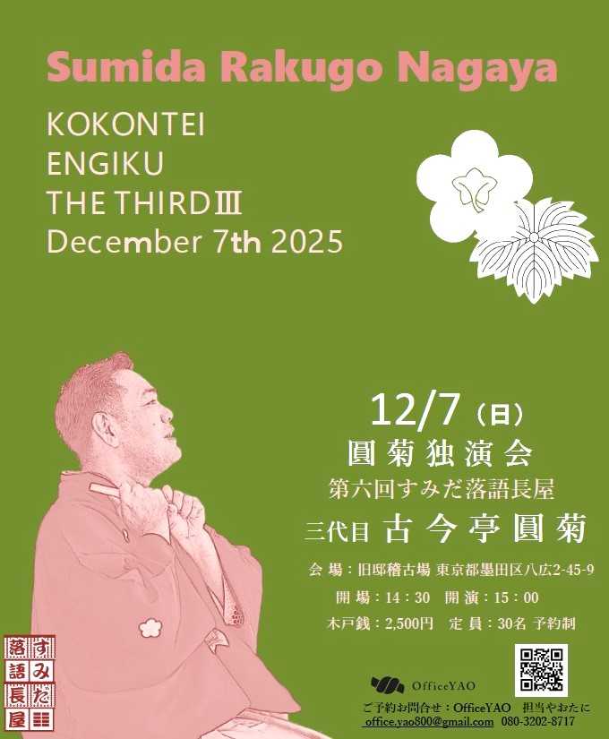 ▽『第6回すみだ落語長屋~圓菊独演会~』12月7日(日)(旧邸稽古場)▽『新日本フィルニューイヤー・コンサート2026inすみだ曳舟《落語&オーケストラ》』26年1月4日(日)(曳舟文化センター) ※公式HPはコチラ