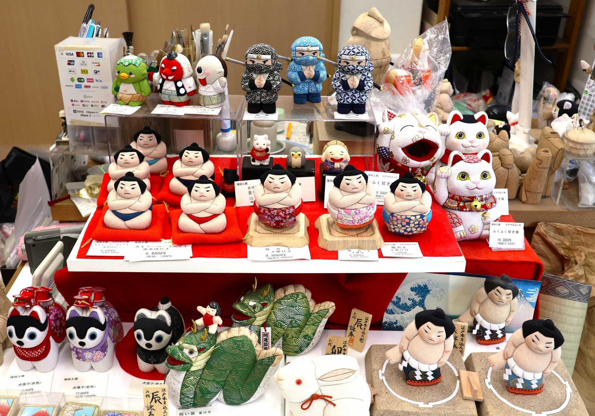 「桐の粉に糊(のり)を混ぜて作った型に筋彫りを入れて布をはめ込む。雛(ひな)人形から能や歌舞伎、干支(えと)を題材に、最近ではお相撲さんなんかも。東京では5軒だけ」